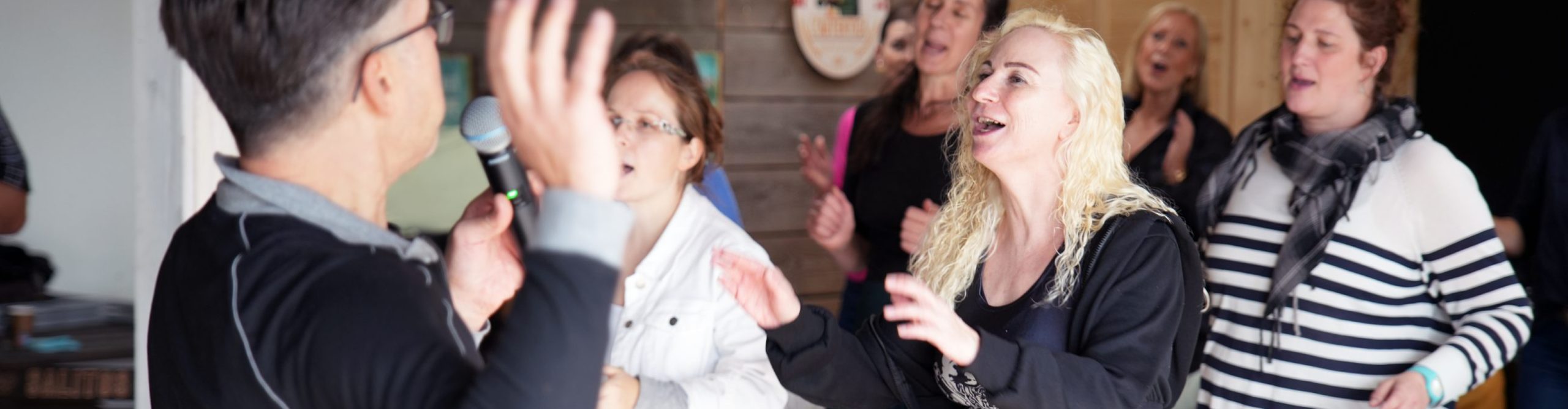 Singen lernen in Urlaubsstimmung - hier ist die Möglichkeit. Direkt am Wasser in Roermonds schönstem Beach Club, kannst du in entspannter und einzigartiger Atmosphäre Singen lernen oder/und an deiner Stimme, Gesangstechnik und Performance arbeiten In diesem Workshop wird in einer kleinen Gruppe individuell und professionell gearbeitet, so dass hier Anfänger & Fortgeschrittene gleichermaßen auf ihre Kosten kommen. Den Abschluss des Workshops bildet ein Konzert der Workshopteilnehmer unter professionellen Rahmenbedingungen.